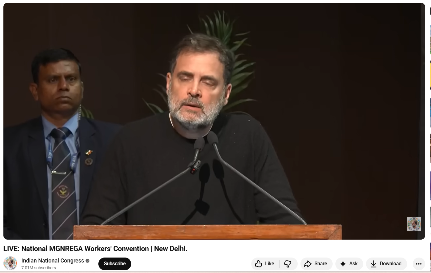 The video is from the National MGNREGA Convention held in New Delhi, where Rahul Gandhi criticised the central government over the replacement of MGNREGA with the new VB–G RAM G law. During his speech, he expressed his opposition to the new legislation and stated that he was unfamiliar with its details. Throughout the address, he did not mention or refer to Lord Ram in any manner.