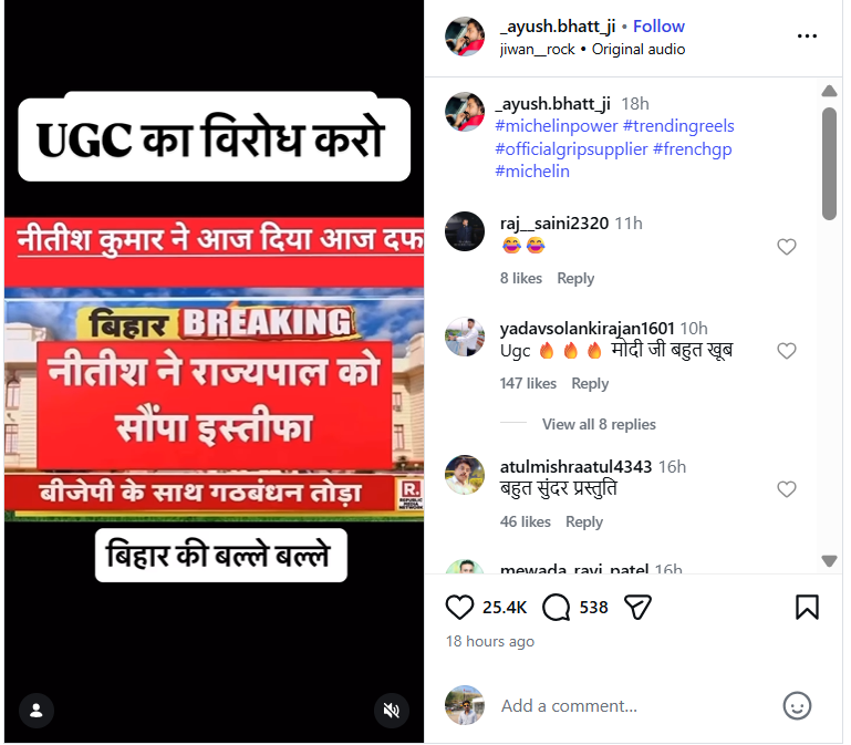 A news video is being widely circulated on social media with the claim that Bihar Chief Minister Nitish Kumar has resigned from his post in protest against the ongoing UGC-related controversy. Several users are sharing the clip while alleging that Kumar stepped down after opposing the issue. However, CyberPeace research has found the claim to be false. The researchrevealed that the video being shared is from 2022 and has no connection whatsoever with the UGC or any recent protests related to it. An old video has been misleadingly linked to a current issue to spread misinformation on social media.