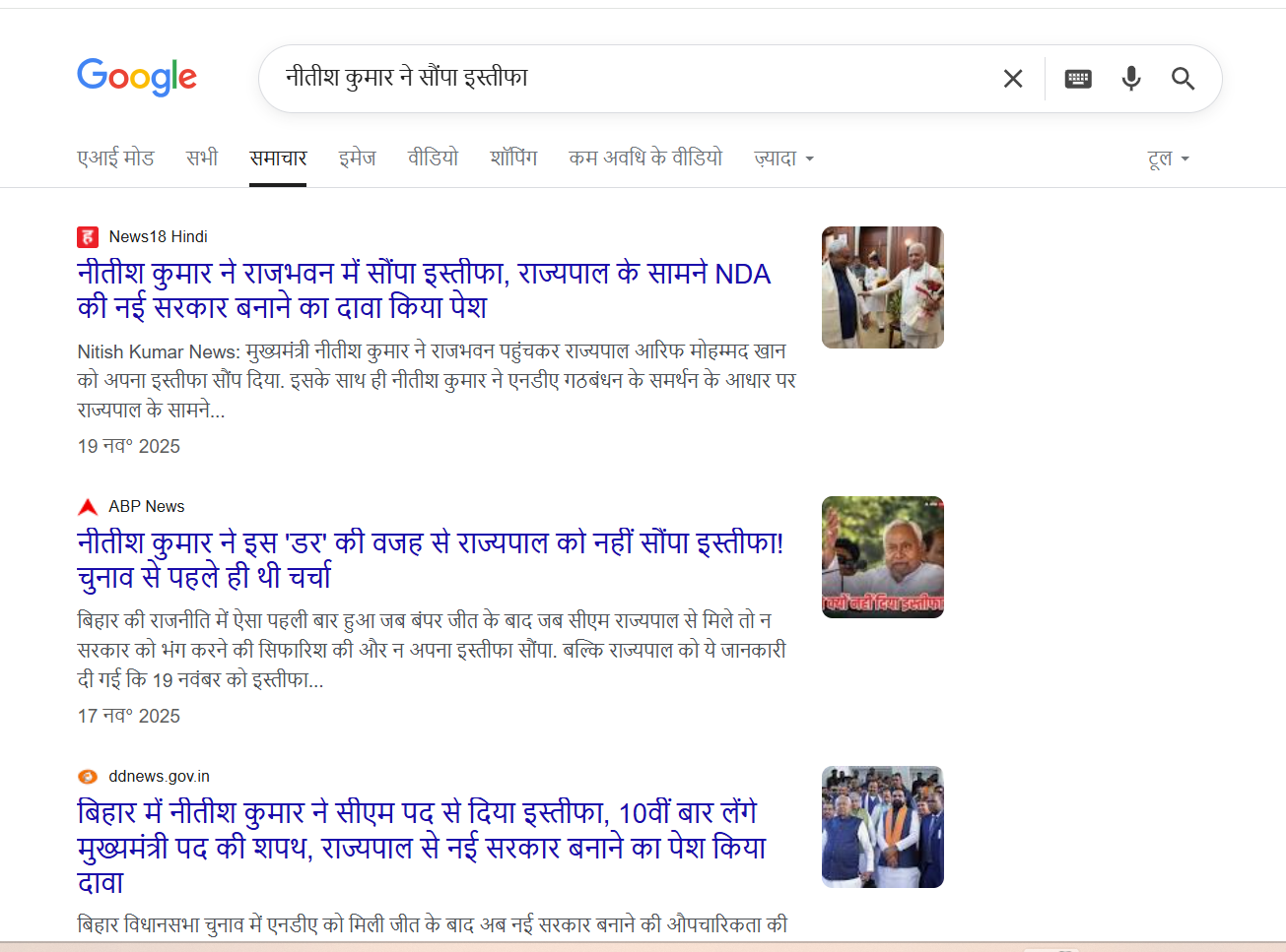 To verify the claim, CyberPeace first conducted a keyword-based search on Google. No credible or established media organisation reported any such resignation, clearly indicating that the viral claim lacked authenticity.
