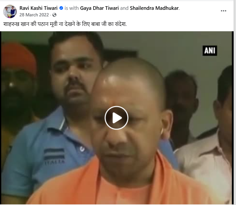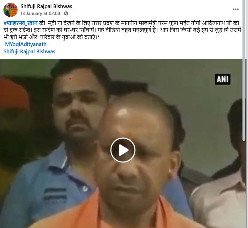 On January 13, 2026, a Facebook user shared the video with the caption: "A clear message from the Hon’ble Chief Minister of Uttar Pradesh, Param Pujya Mahant Yogi Adityanath, urging people not to watch Shah Rukh Khan’s movie. Share this message widely, send it to all groups you are part of, and inform the youth in your family."