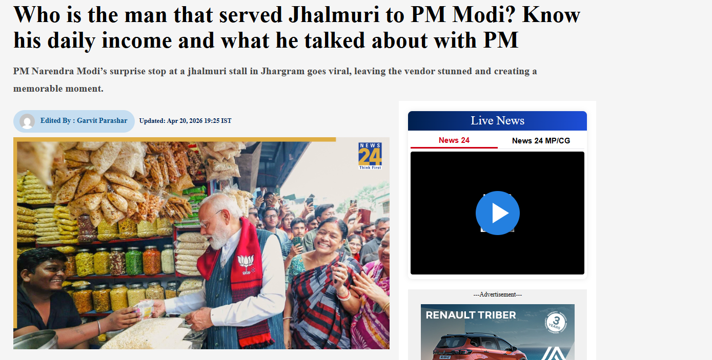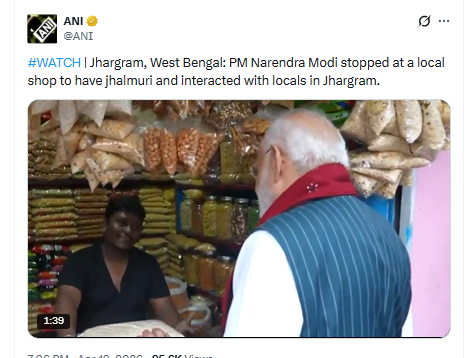 According to media reports, the prime minister briefly stopped at a roadside stall during the campaign in Jhargram and interacted with the vendor while enjoying jhalmuri. The vendor was later interviewed by multiple outlets, further confirming his identity as a local seller. Additionally, technical facial comparison analysis using online tools also indicated that the two individuals in the viral collage are not the same person.