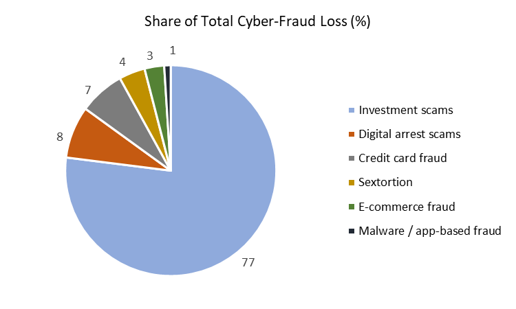 Distribution of Financial Losses Across Major Cyber-Fraud Categories in India