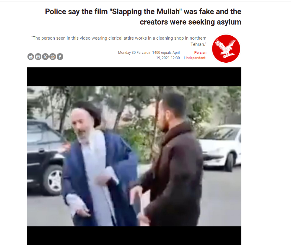 Police stated that the video was deliberately staged and circulated to provoke public sentiment and create unrest by falsely linking it to religious tensions. Both the father and son were arrested, and images of them in police custody were published in contemporaneous reports. Additional confirmation was found on the Independent Persian website, which had also reported on the incident on April 19, 2021, reiterating that the video was fabricated and unrelated to any protest movement. Here is the link to the original video, along with a screenshot: