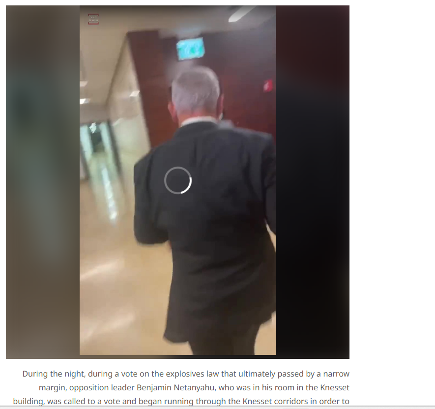 According to the report, voting in the Knesset (Israel’s parliament) continued throughout the night, and an explosives-related bill was passed by a very narrow margin. At the time, opposition leader Benjamin Netanyahu was in his room inside the Knesset building. When he was called for the vote, he hurried through the parliament corridors to reach the chamber in time to cast his vote.